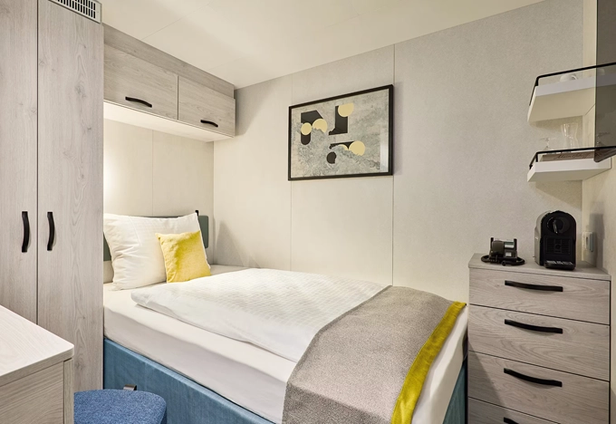 | EZIO - Kajuta Single vnitřní 8 m². 4. paluba. Max 1 osoba. | 43 017 Kč 43 017 Kč za osobu |